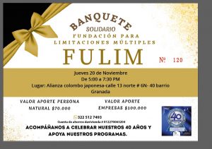 La Fundación FULIM te invita a celebrar cuatro décadas de compromiso con las personas con discapacidad múltiple en nuestro Banquete Aniversario.